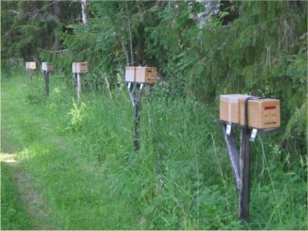 ÅKERLUNDS BISYSSLAJag odlar fram Buckfast drottningar från den egna bigården.Under åren har jag använt olika metoder för min drottningodling, den mest framgångsrika har blivit att använda omlarvning med nål och start i snabbkokare. Tidigare preparerat supersamhälle får ta sig ann blivande drottningar för att sedan komma till parningskuporna för friparning vid den egna bigården.Jag får på detta vis drottningar för eget behov och några för avsalu. Har du önskemål och vill köpa drottningar så var ute tidigt, senast mitten av maj för beställning. Parningsstation med Apidea kupor.